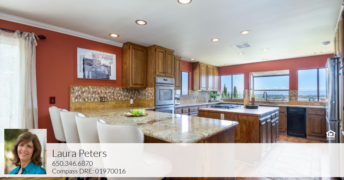 Secluded Spanish Oasis in Belmont with Stunning views of The Bay from both levels of the house and the yard. Varied gathering places for everyone to enjoy! The living room has bay views to be seen through the oversized windows and glass door that opens to a large deck for indoor-outdoor living. The large open kitchen has a butcher-block island. Also upstairs is the primary suite that opens onto the deck. The second bedroom and ½ bath are on the same level. If you like to entertain, the fenced private and front courtyard expands the first level with Spanish-style arches, vined gazebo, and tiled patio. The bottom floor has two bedrooms, a full bathroom, a very large family room, wine cellar and wet bar. (Buyers to verify bedroom and bathroom count) This lot is 22,035 SF with a huge backyard with views! Enter the back yard from the first-floor family room and enjoy the flagstone patio and firepit, enormous lawn area that gently slopes away from the home. The possibilities are endless for this country-like backyard with mature fruit trees, flowering plants and a vegetable garden. There's also a cabin for a home office/art studio or playhouse. This large backyard would be a great place for a pool, pickle ball court or accessory dwelling unit.