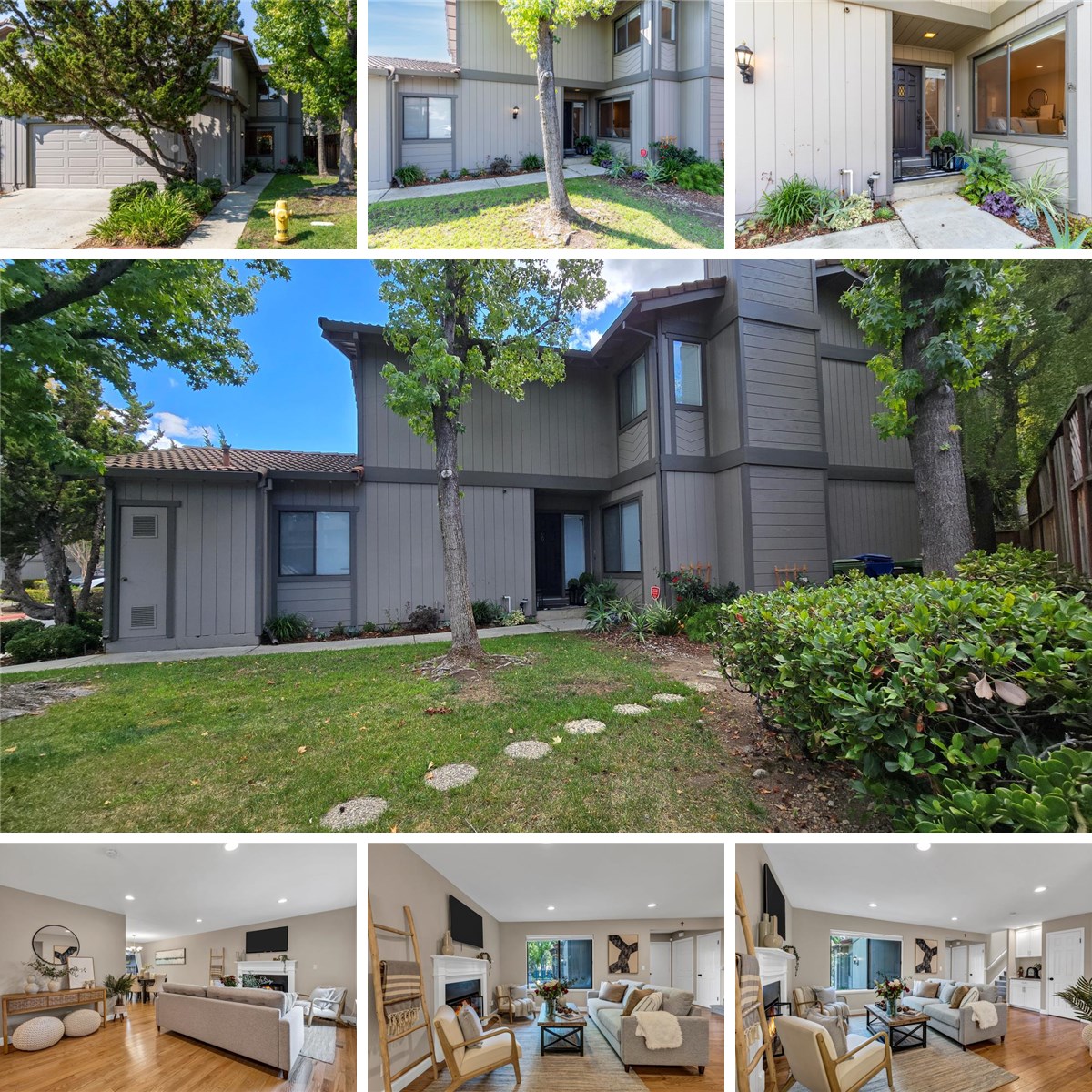 Stylish corner unit townhome in the desirable Courtstyle community of Los Gatos with access to top rated Los Gatos schools. The main level features hardwood floors, fresh paint, recessed lighting, a spacious living area with a cozy gas fireplace, and a formal dining area. The remodeled kitchen is finished with crisp white Shaker cabinetry, quartz counters, stainless appliances, and abundant storage including a large pantry, all overlooking the backyard. Upstairs, the vaulted primary retreat offers a private balcony, gas fireplace, and a spa inspired bathroom with double sinks, skylight, oversized tile shower, and walk in closet. Additional highlights include updated secondary bathrooms with modern finishes, convenient interior laundry, double pane windows, new carpet upstairs, and a two car attached garage. The rear yard offers generous patio space with café lights, creating a private outdoor setting for entertaining or gardening. Turnkey living in a prime neighborhood and truly a must see.